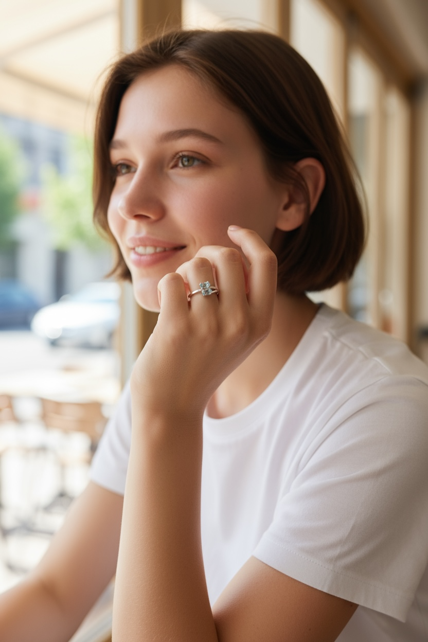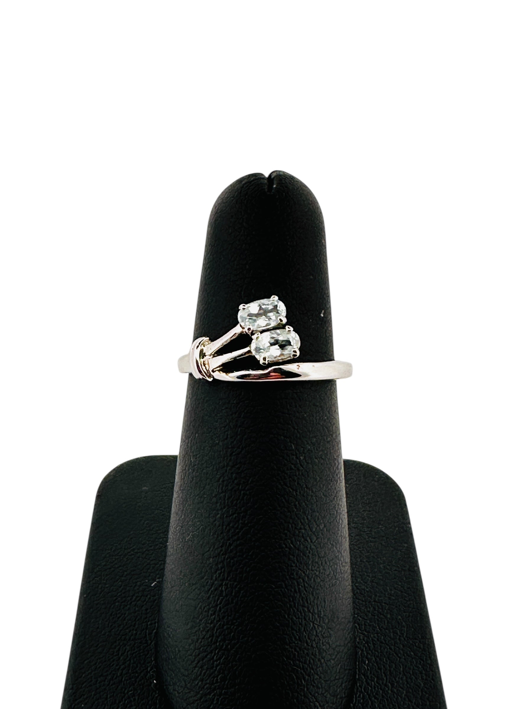 Two oval Aquamarines nestled together in Sterling Silver. A symbol of harmony and balance, with a soft glow of oceanic blue.
