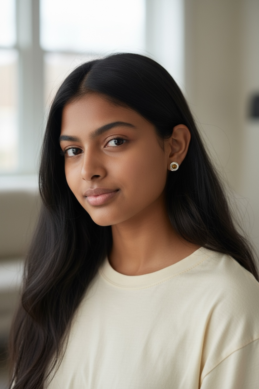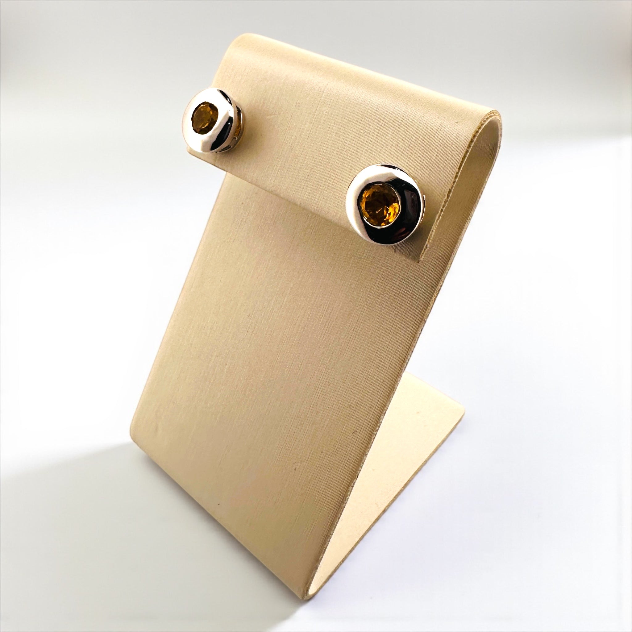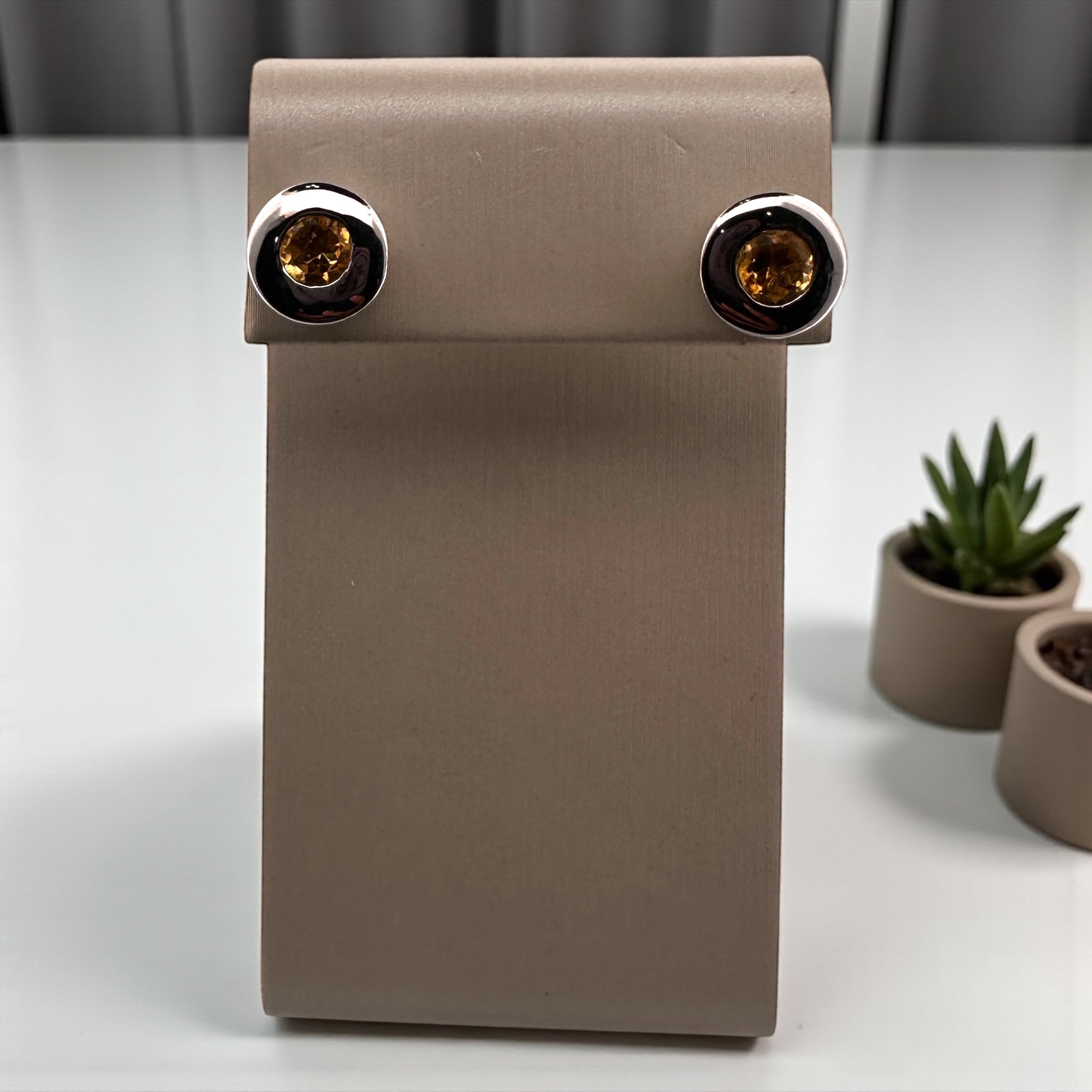 Round-cut Citrines bezel set in Sterling Silver. Timeless, glowing, and versatile—a staple for everyday elegance.