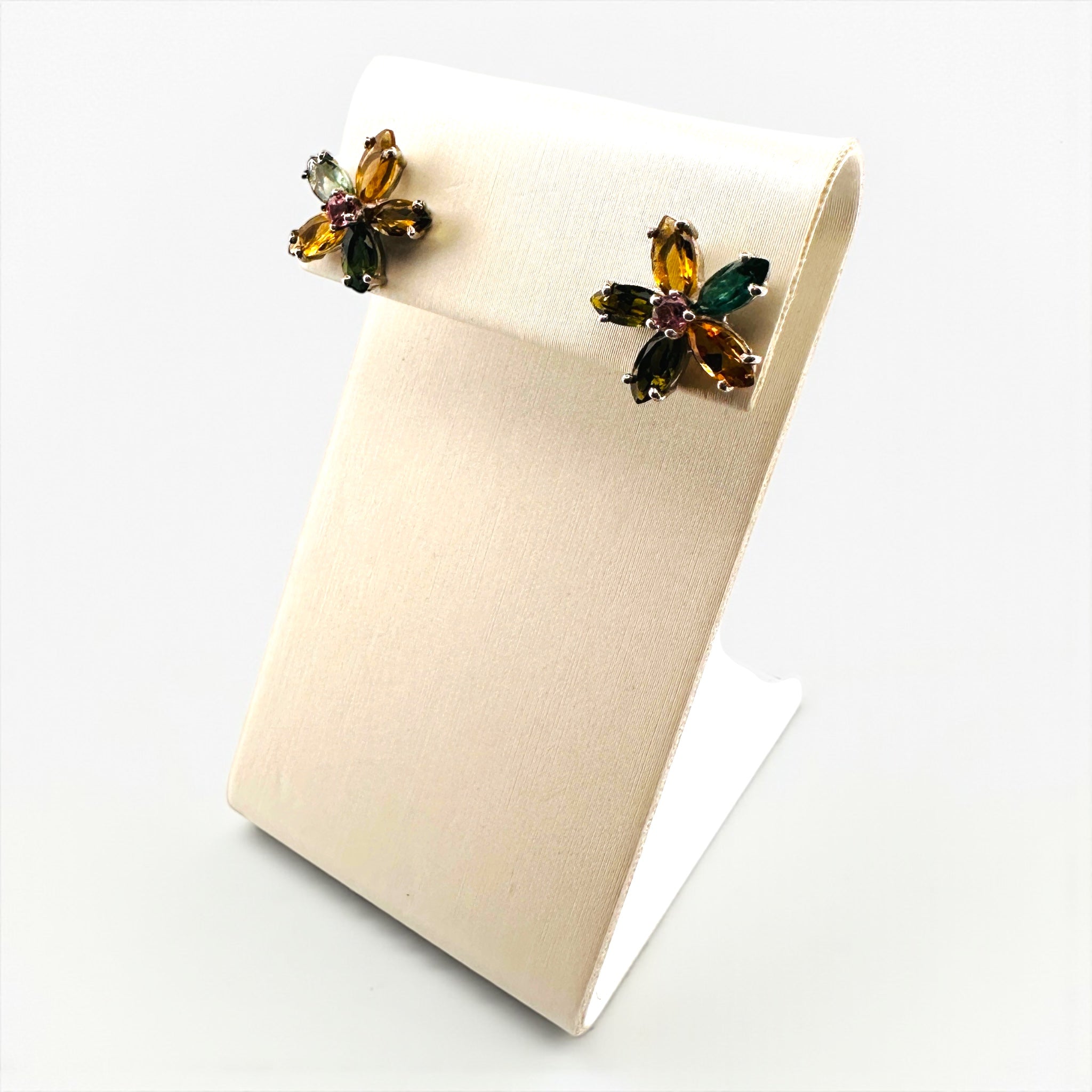 Graceful and colorful, these earrings pair vibrant Multi-Tourmalines (2.64 tcw) with glittering Zircons (4.117 gms) in Sterling Silver. Bold yet versatile—perfect from day to evening.
