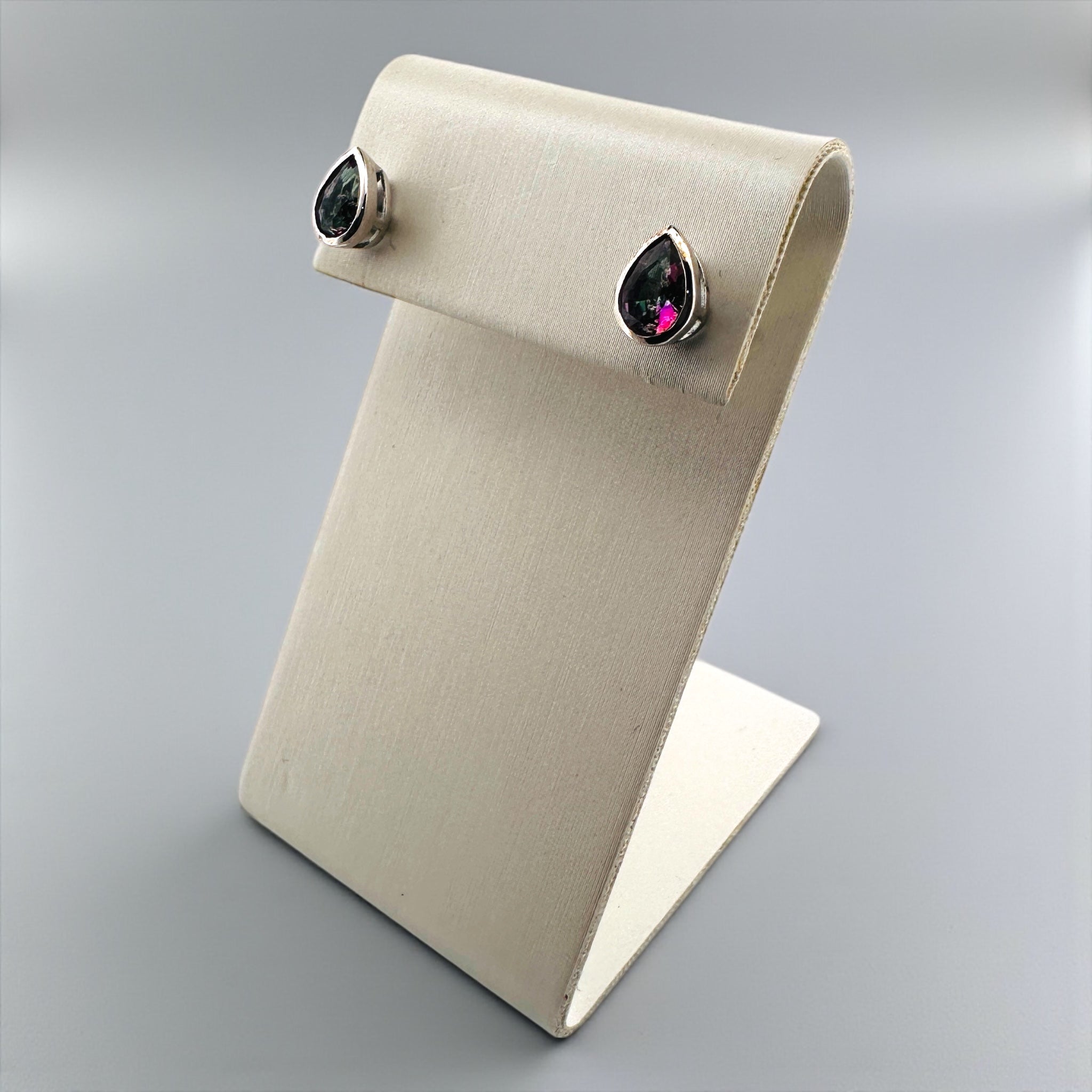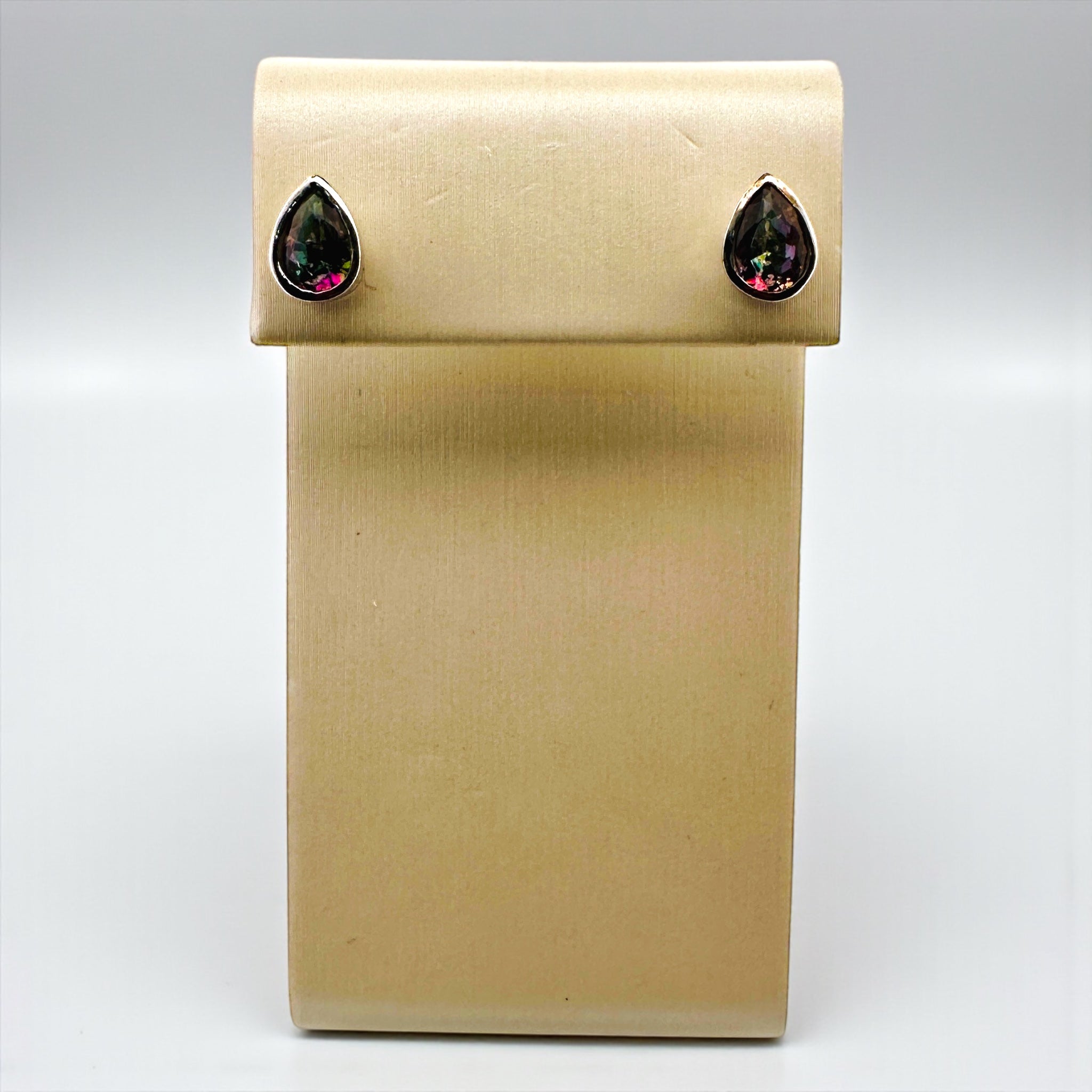 A pear-shaped mystic Quartz gemstone bezel set in Sterling Silver. Iridescent tones shift with the light, adding a touch of mystery and magic.