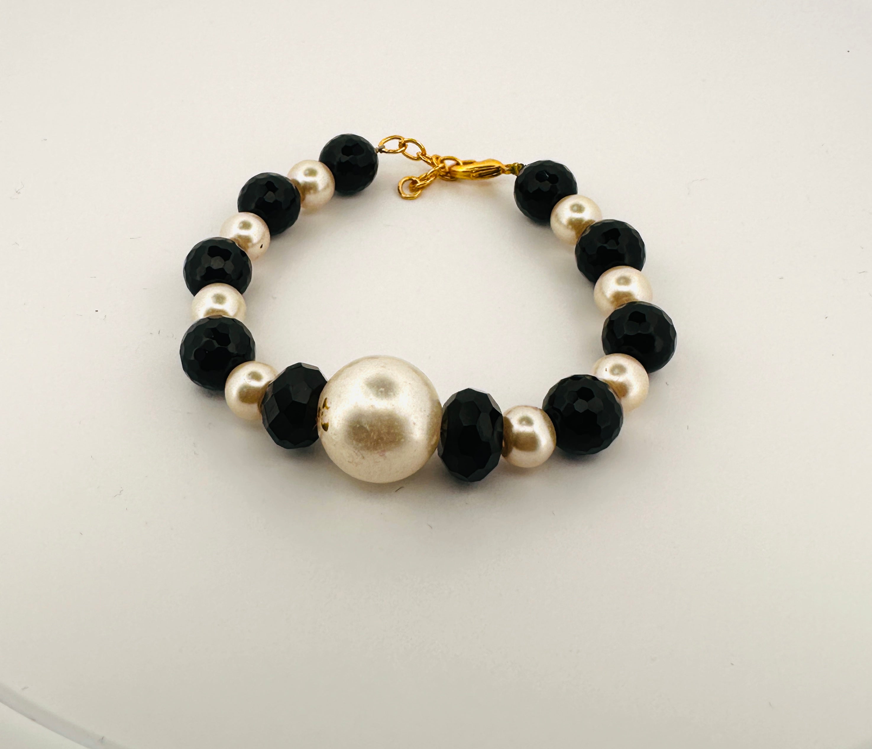 Glossy Onyx beads paired with lustrous Pearls—a dramatic contrast of light and dark in a timeless design.