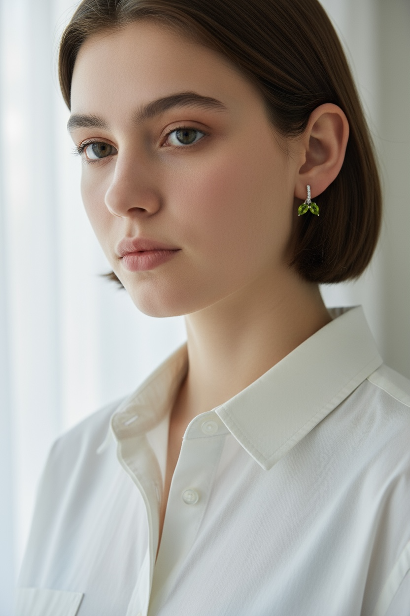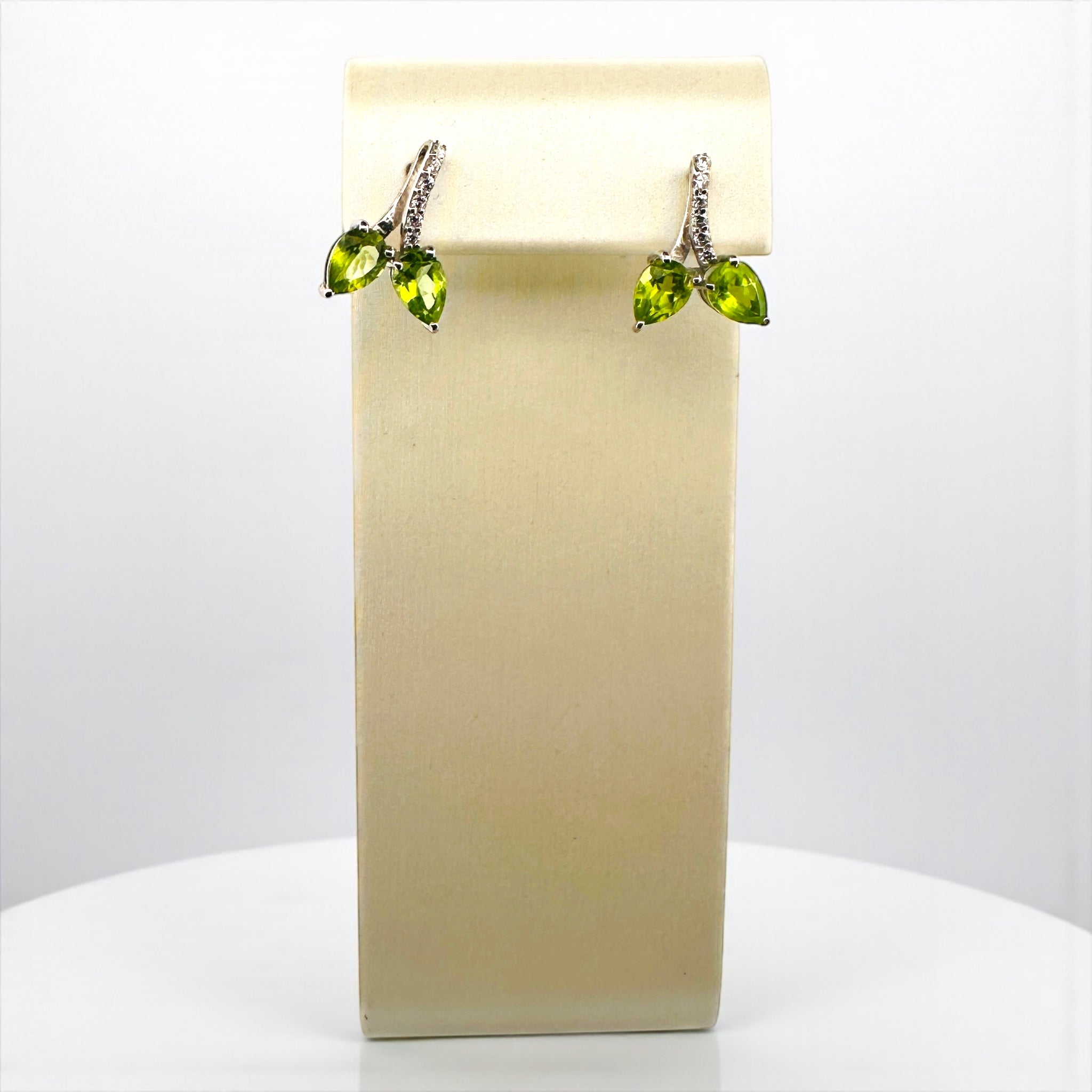 Luminous pear-shaped Peridots (2.42 tcw) wIt Whits Zircon in Sterling Silver. Fresh, vibrant, and timelessly elegant.