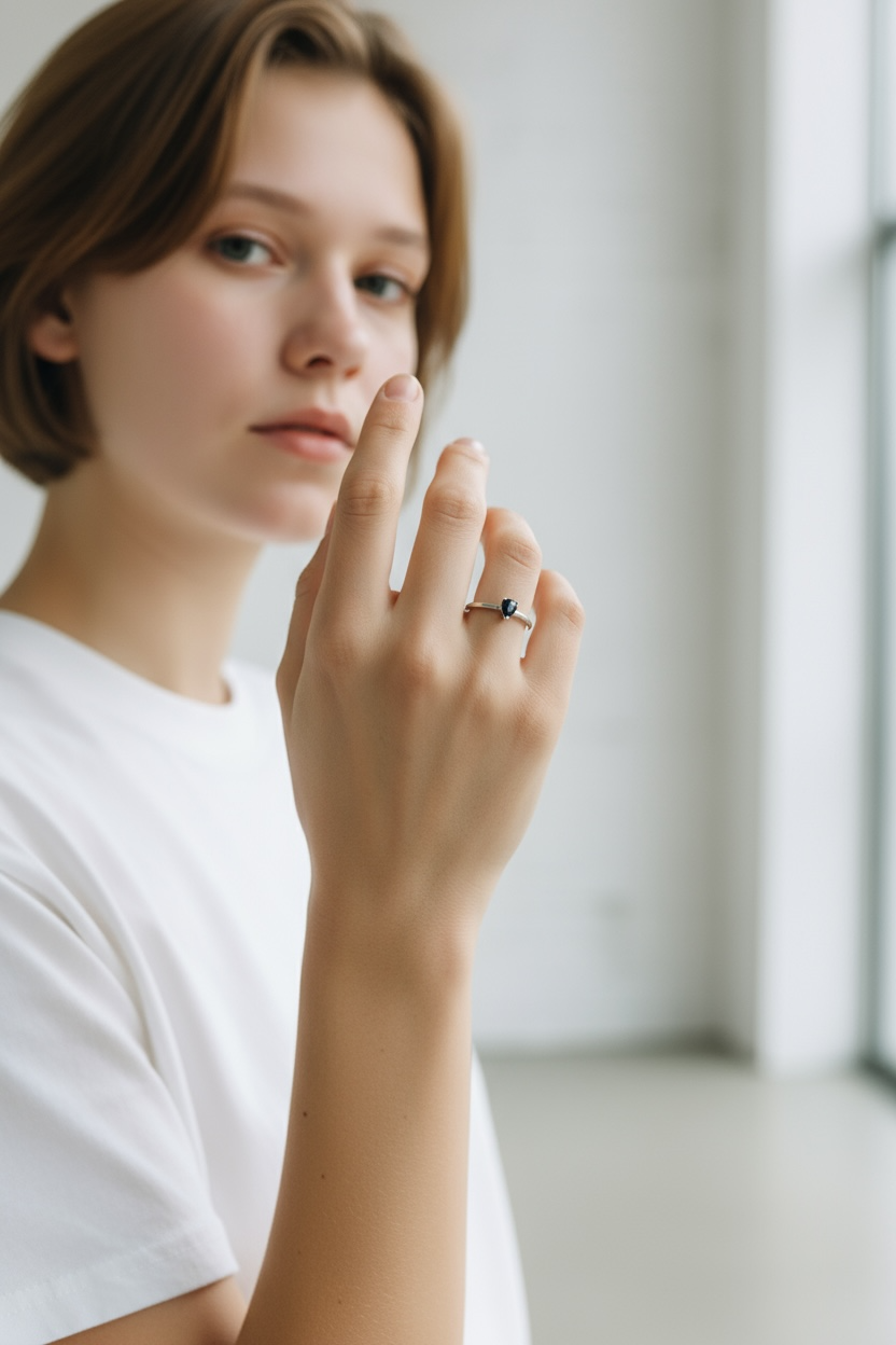 A delicate pear-shaped Sapphire (.25 ct) set in Sterling Silver. Simple, elegant, and timeless.