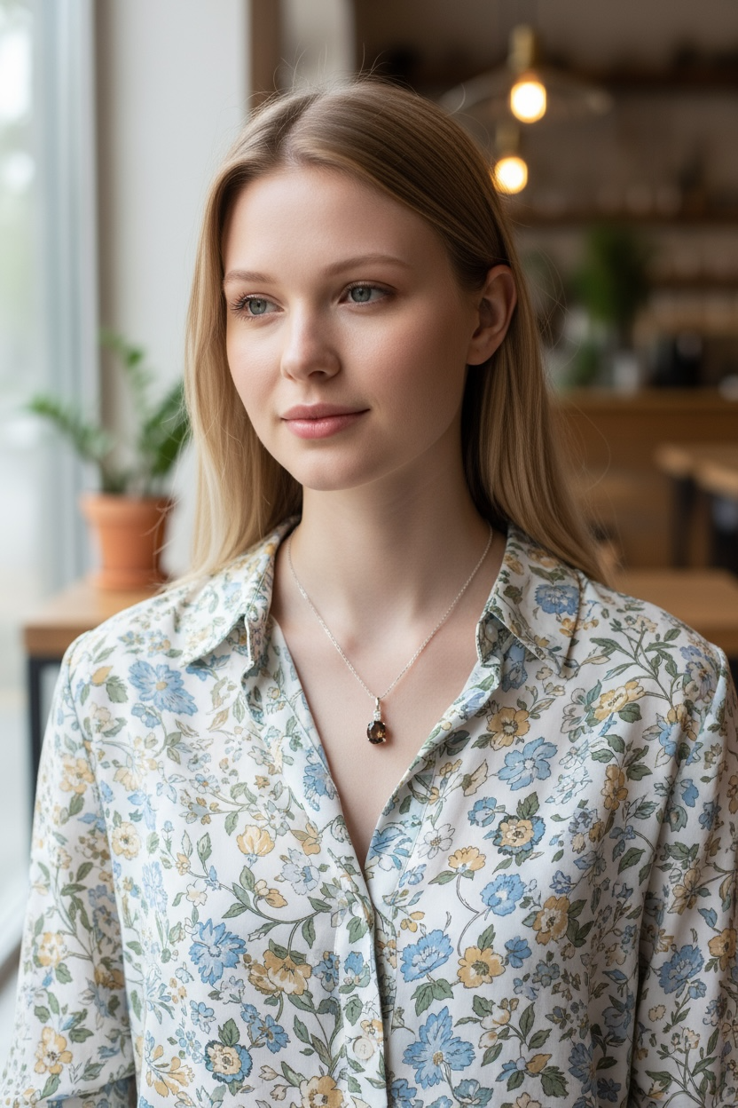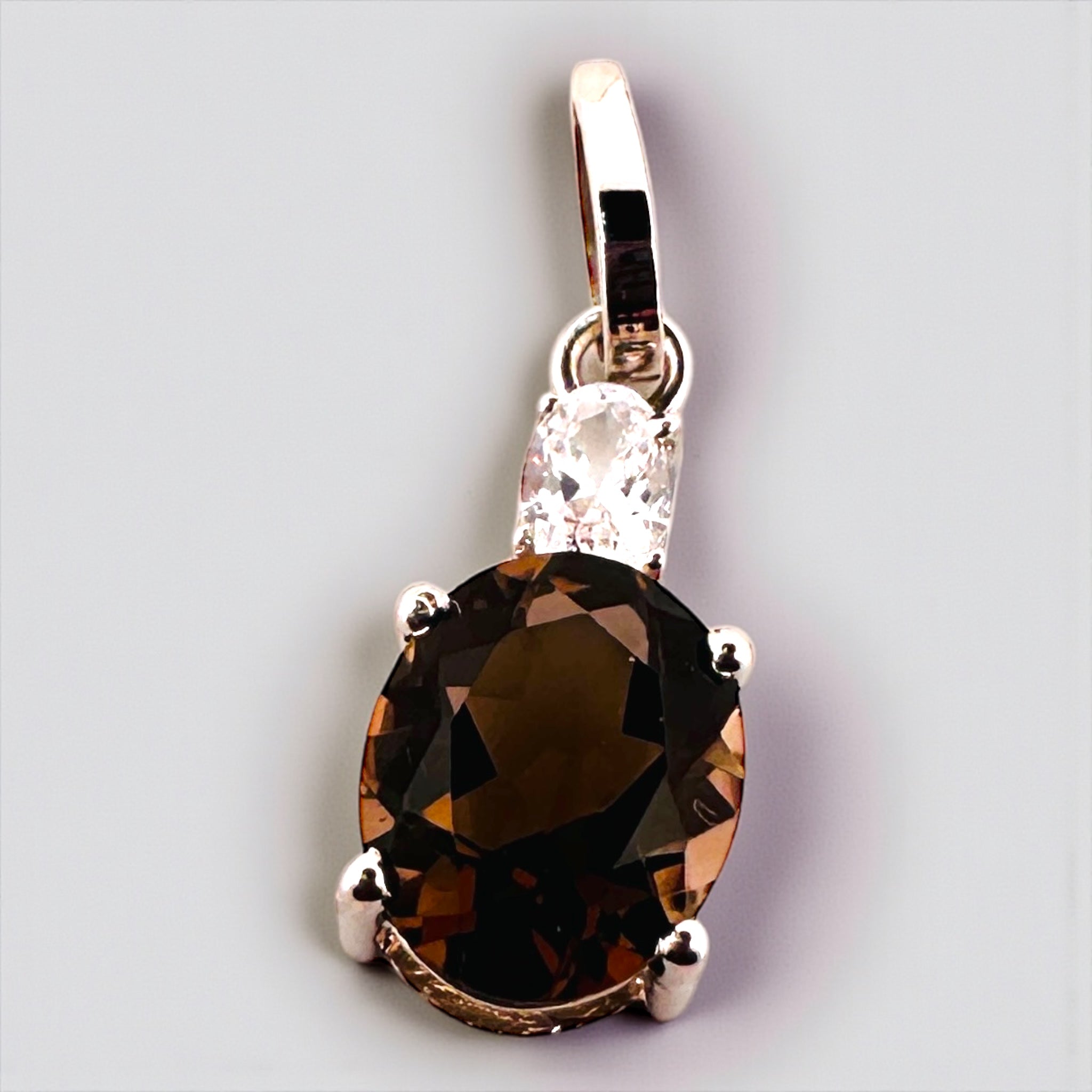 An oval-cut Smoky Topaz (2.4 c) crowned with a glowing Zircon creates a striking contrast of warmth and brilliance. Sophisticated yet understated, this pendant is designed for effortless elegance.