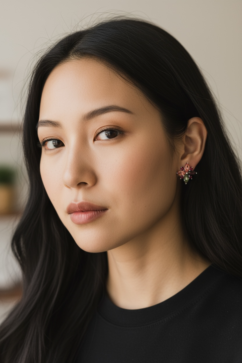 Green, Yellow, Red, and Pink Tourmalines form vibrant large petals, accented by roundTourmalines between each bloom. A Sterling Silver setting completes this radiant floral design.